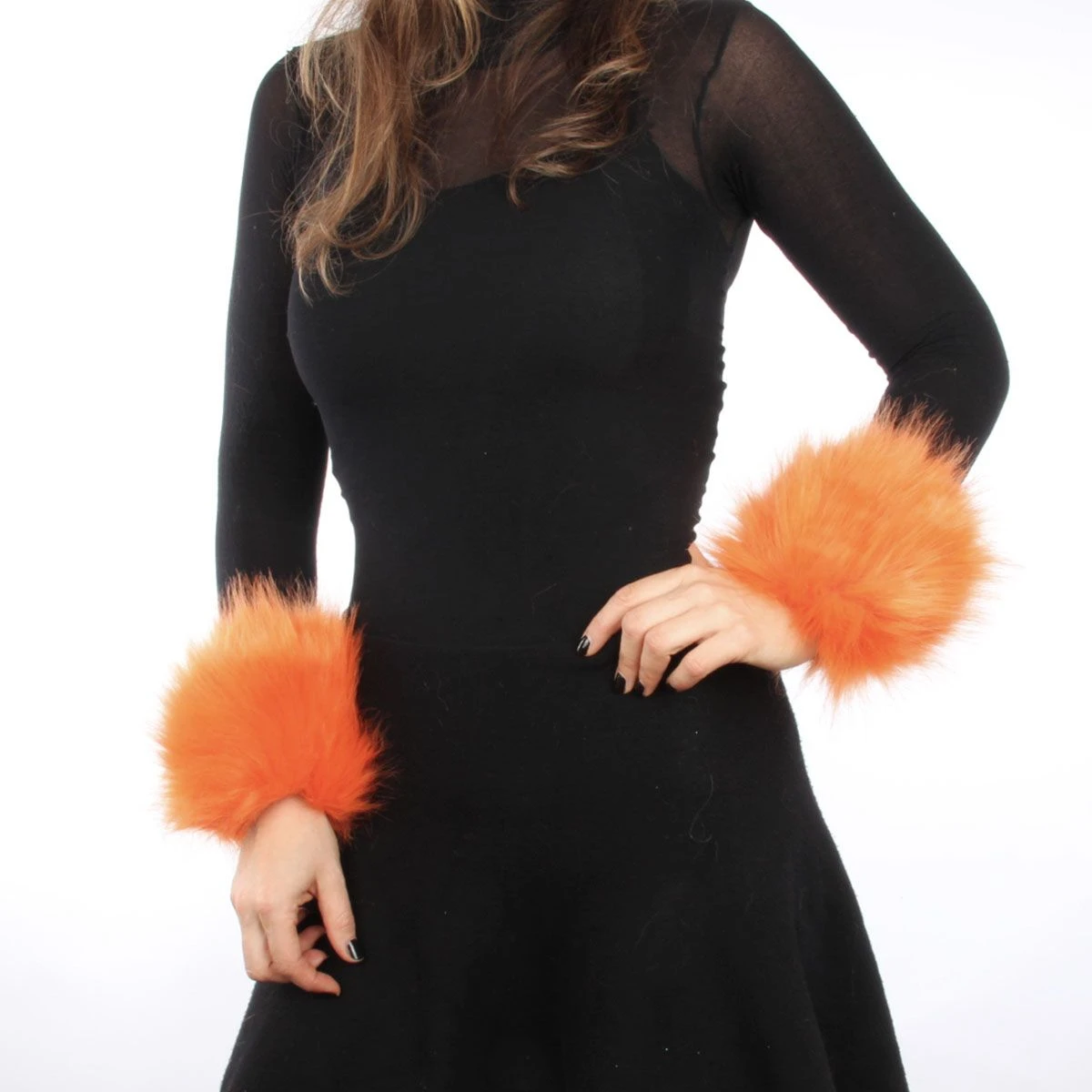 Prachtige oranje manchetten van imitatiebont. Exclusief bij Hoofs verkrijgbaar.