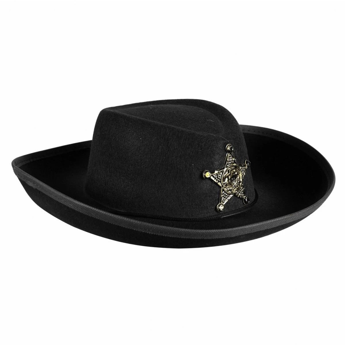 Zwarte cowboyhoed voor kinderen met sherrif ster.