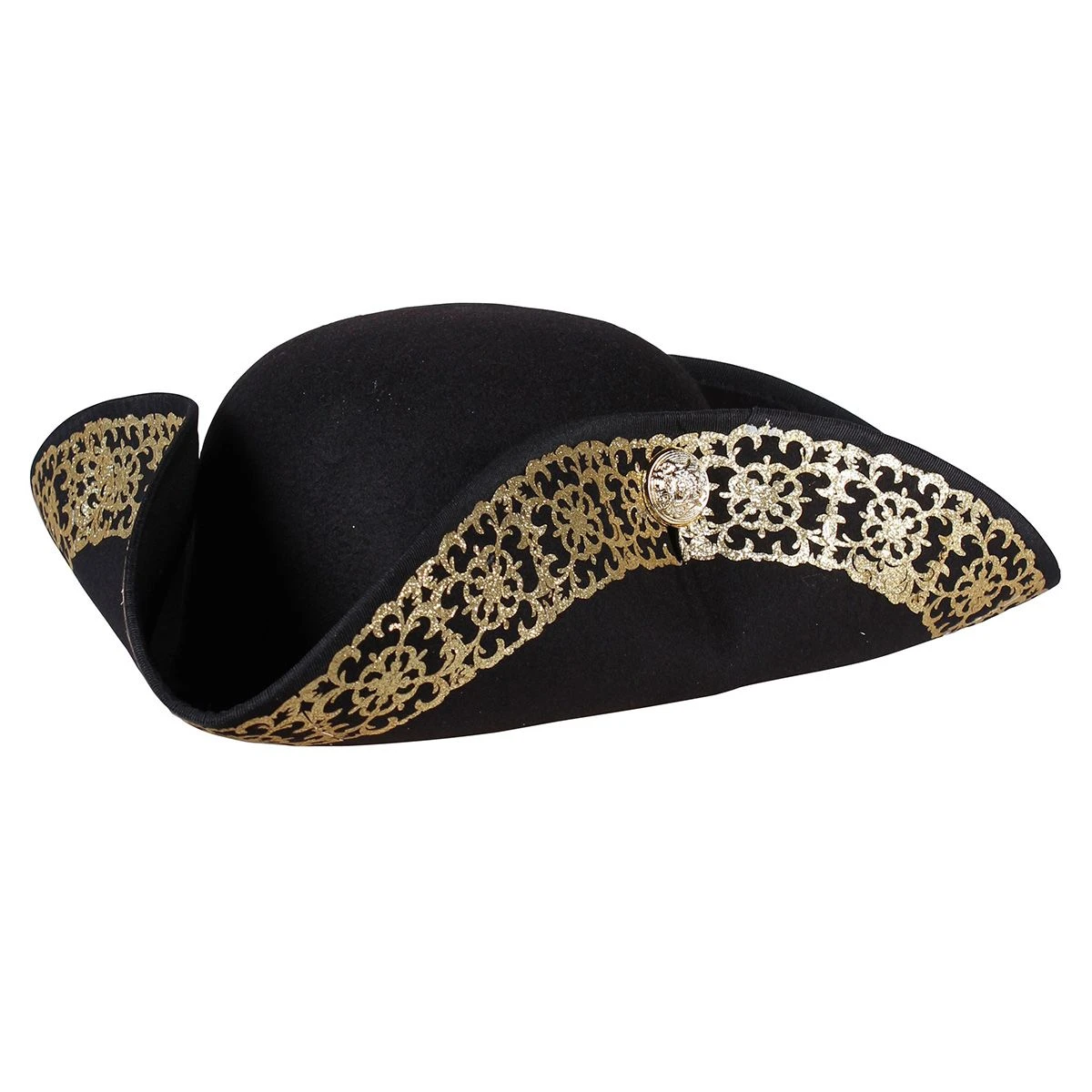Prachtige zwarte driesteek met gouden brokaat rand.