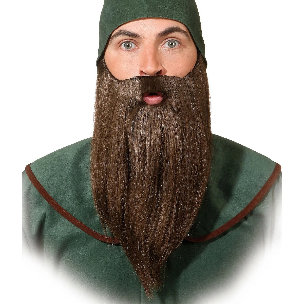 Lange bruine baard. Zeer geschikt voor een dwergen of viking kostuum.