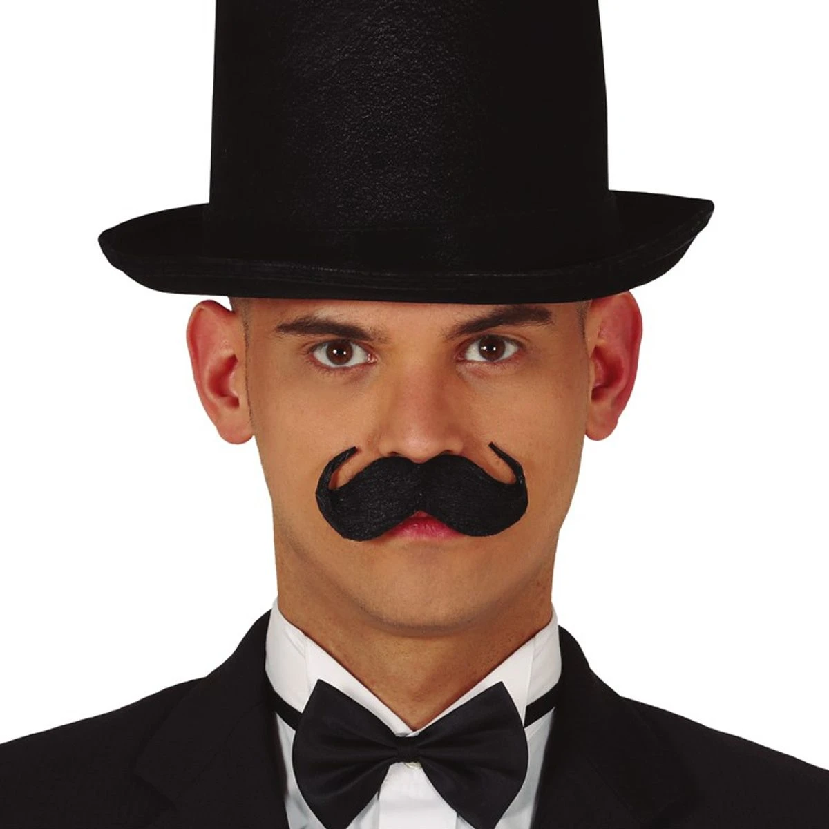 Erg mooie en dikke plaksnor met omhoogkrullende punten. Als jij nog een stoere snor nodig hebt is dit een geweldige keuze. Perfect voor een britse gangster of jaren 20 outfit!