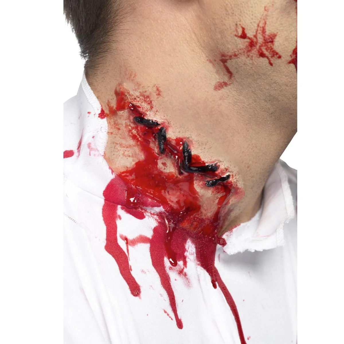 Deze gehechte wond lijkt net echt! Plaats hem waar je wil en voeg wat nep bloed toe om de wond zo echt mogelijk te laten lijken. Hier gaat iedereen van huiveren, brrrrr!