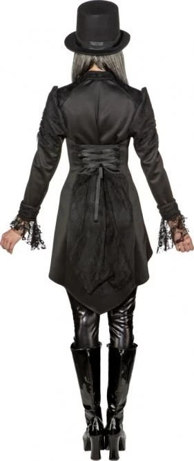 Gothic slipjas voor dames. De prachtige zwarte slipjas is ideaal voor Halloween. Combineer het met een hoge hoed en pruik voor een mysterieus effect.