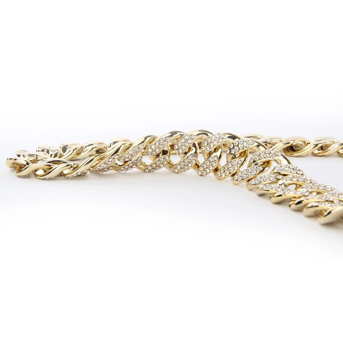 Goudkleurige grove schakelketting met kunst diamantjes. De finishing touch voor je Gangster/Maffia of Foute Party outfit!