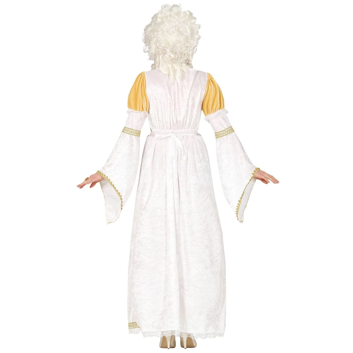 Prachtige gravin jurk met een gele voorkant en een witte achterkant. Met deze jurk zie jij er uit alsof je écht van adel bent. Maak de look af met een van onze pruiken!