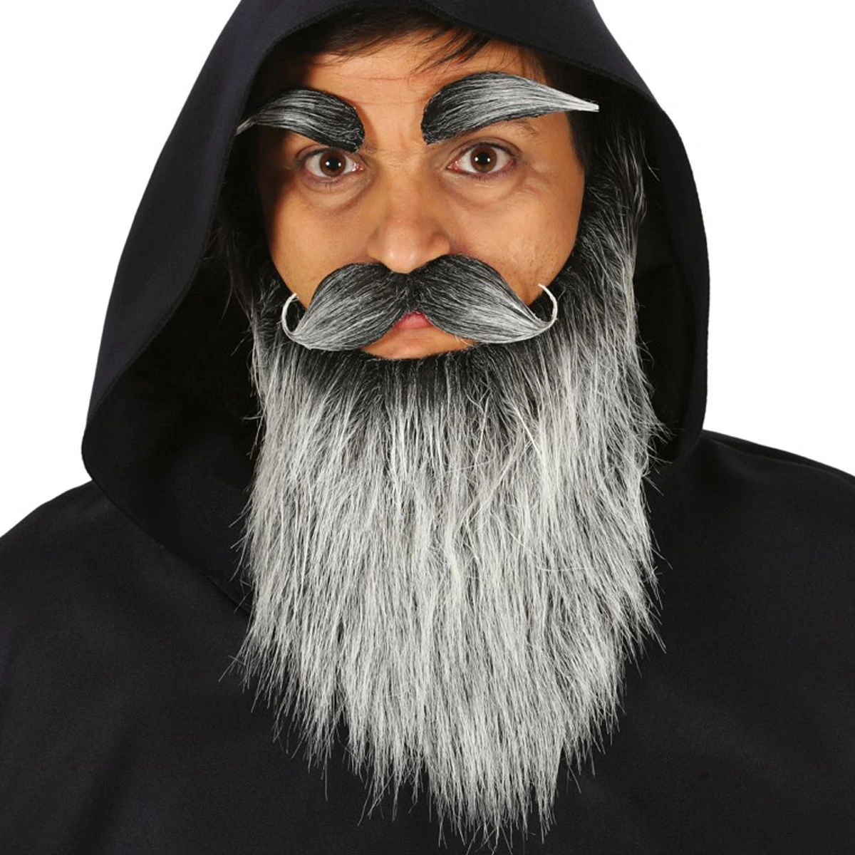 Lange grijze baard met snor en wenkbrauwen, geschikt voor bijvoorbeeld een tovenaar of Abraham.