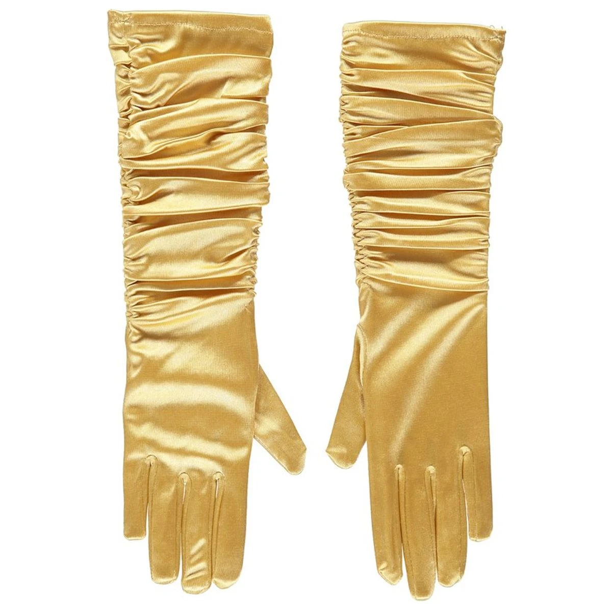 Lange gouden handschoenen met plooi, onze size.