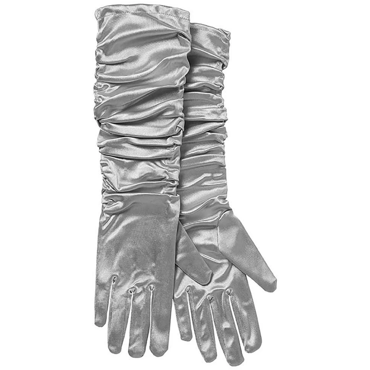 Lange zilveren handschoenen met plooi, onze size.