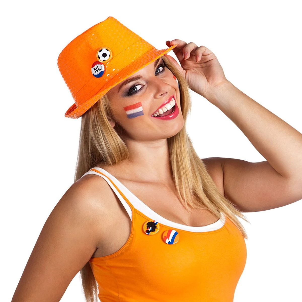 Leuke set van 4 Holland Nederland buttons, leuk voor op je shirt of hoedje. De buttons zijn 3 cm groot.