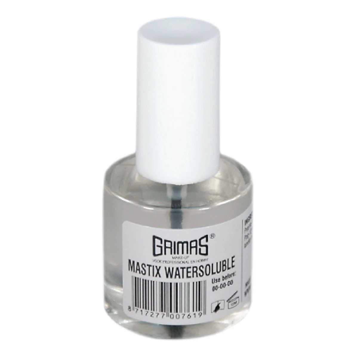 Grimas Wateroplosbare Mastix is een met water te verwijderen huidlijm en wordt gebruikt voor het lijmen van Wolcrêpe baarden en snorren bij kinderen waarbij het beslist niet in de buurt van of boven de ogen mag worden gebruikt.