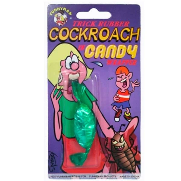 Snoepjes/zuurtje met een kakkerlak in de verpakking. Voor de perfecte 1 april grap.