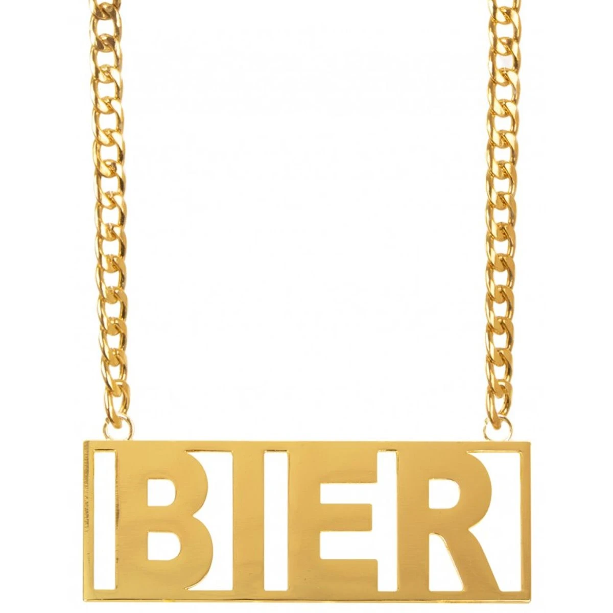 Gouden ketting met de tekst “BIER” als hanger. Een perfect accessoire voor je foute party!