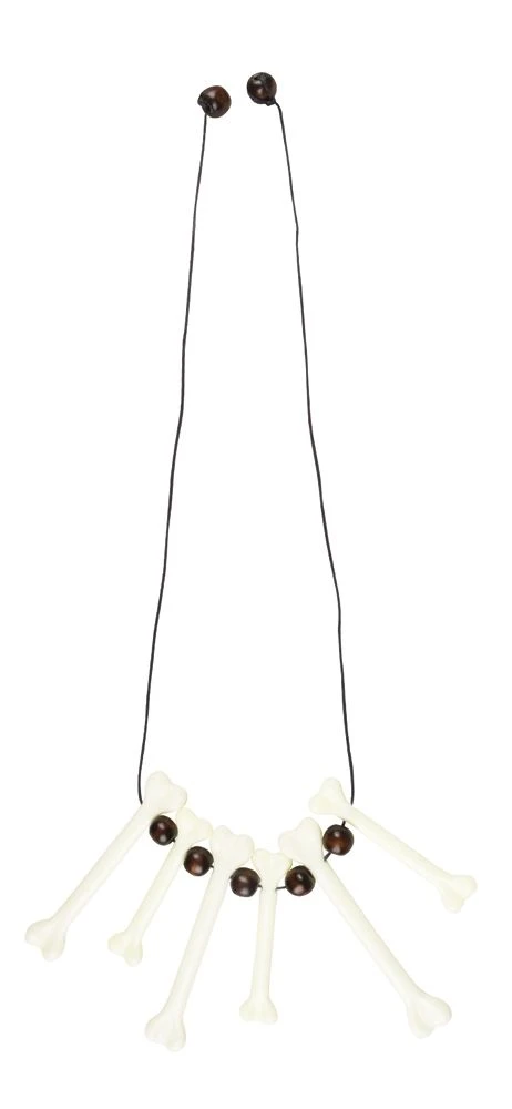 De ketting botten is een perfecte accessoire voor jouw kannibaal kostuum. De ketting bestaat uit een mix van kleine en wat langere botten met daar tussen kralen. Je bevestigt deze botten ketting door deze vast te knopen in je nek.