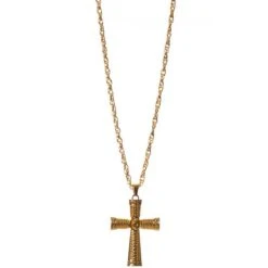 Stoere gouden ketting met een hanger in de vorm van een kruis. Super geschikt voor heel veel outfits. Combineer ‘m bijvoorbeeld met een van onze pimp kostuums.