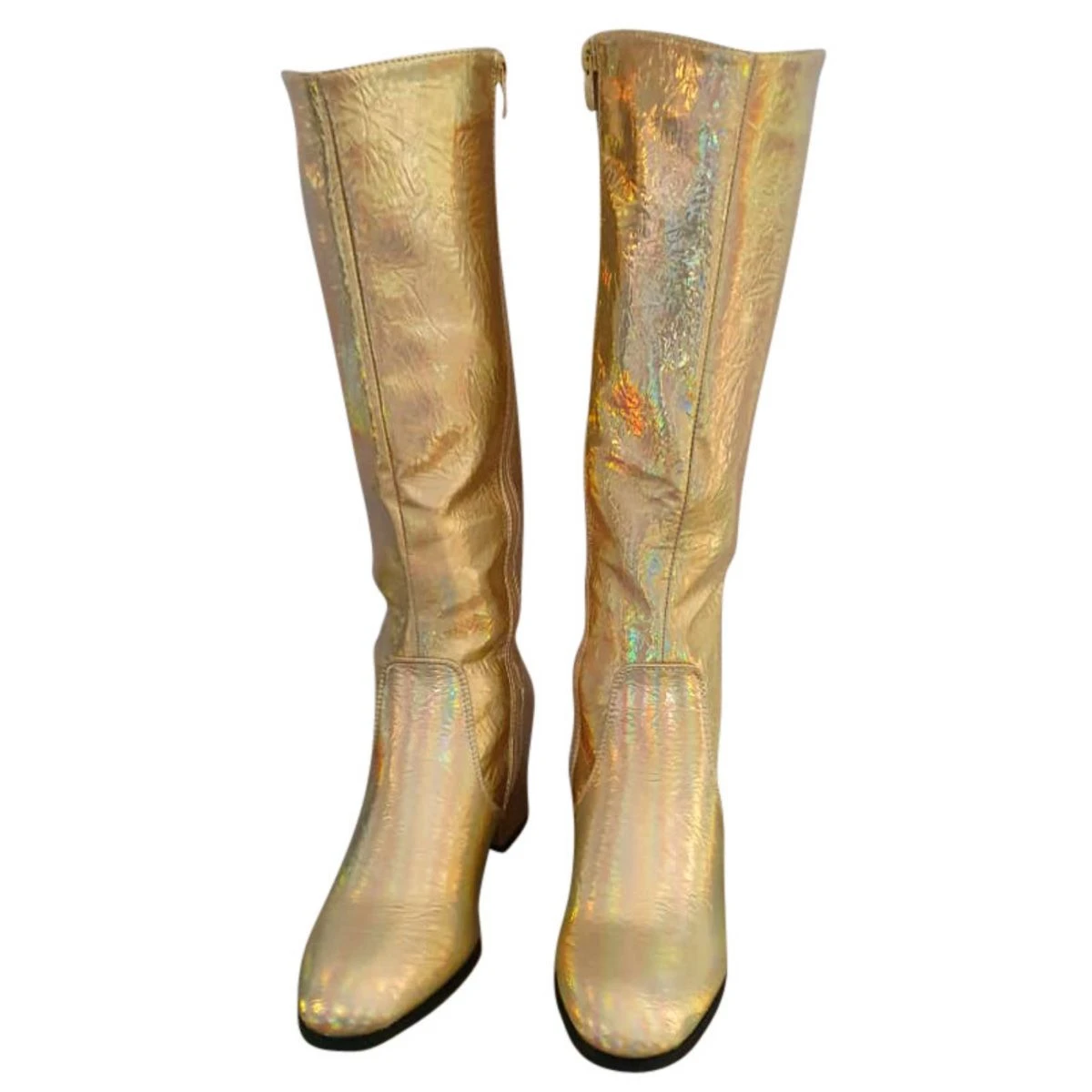 Hippe gouden dameslaarzen met hologram effect. Met deze laarzen spat jij van de dansvloer af! Zeer geschikt voor je disco of jaren 80 outfit.
