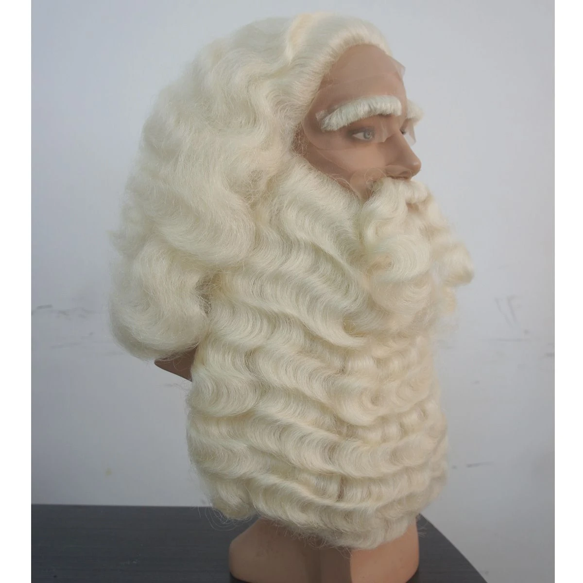 Dit prachtige luxe baardstel is gemaakt van Yakhaar in een mooie, natuurlijke kleur. De set bestaat uit pruik, baard, snor en wenkbrauwen. De pruik en de baard zijn zowel genaaid als met de hand geknoopt. De twee wenkbrauwen en de snor zijn volledig met de hand geknoopt. Het haarnetje is met huidlijm vast te plakken. Dit luxe baardstel geeft u een waardige uitstraling als Sinterklaas.