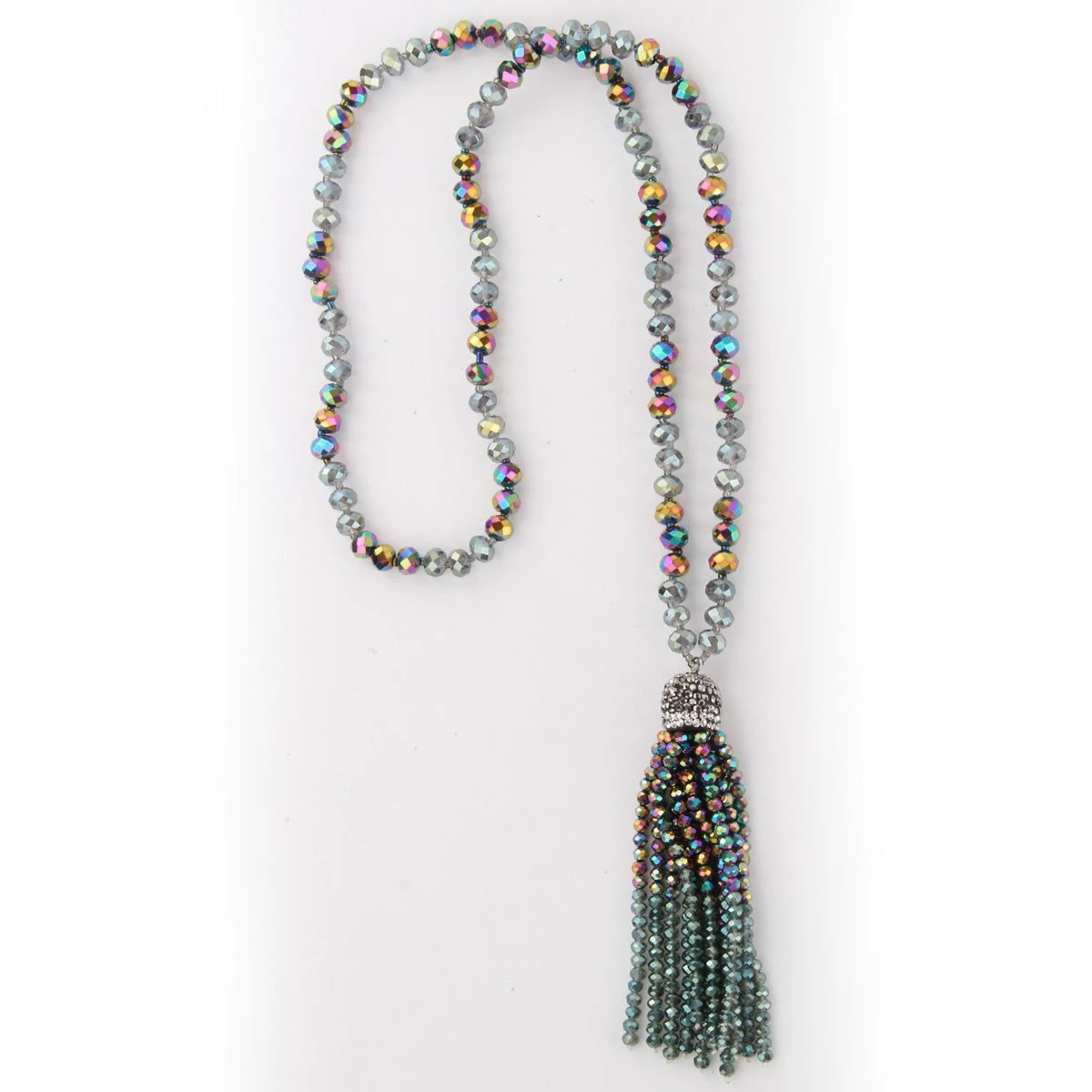 Deze luxe zilveren ketting is de finishing touch voor jouw outfit. De ketting heeft een sprankeling van zilver met multicolor. Bijpassende oorbellen zijn ook verkrijgbaar.