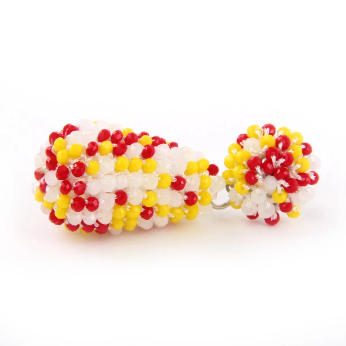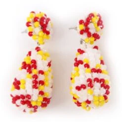 Deze luxe oorbellen zijn echte eye-catchers. De oorbellen zijn verfijnd bezet met kleine rood-wit-gele kraaltjes voor een sprankelend effect. Deze oorbellen zijn de ‘finishing touch’ van je outfit.