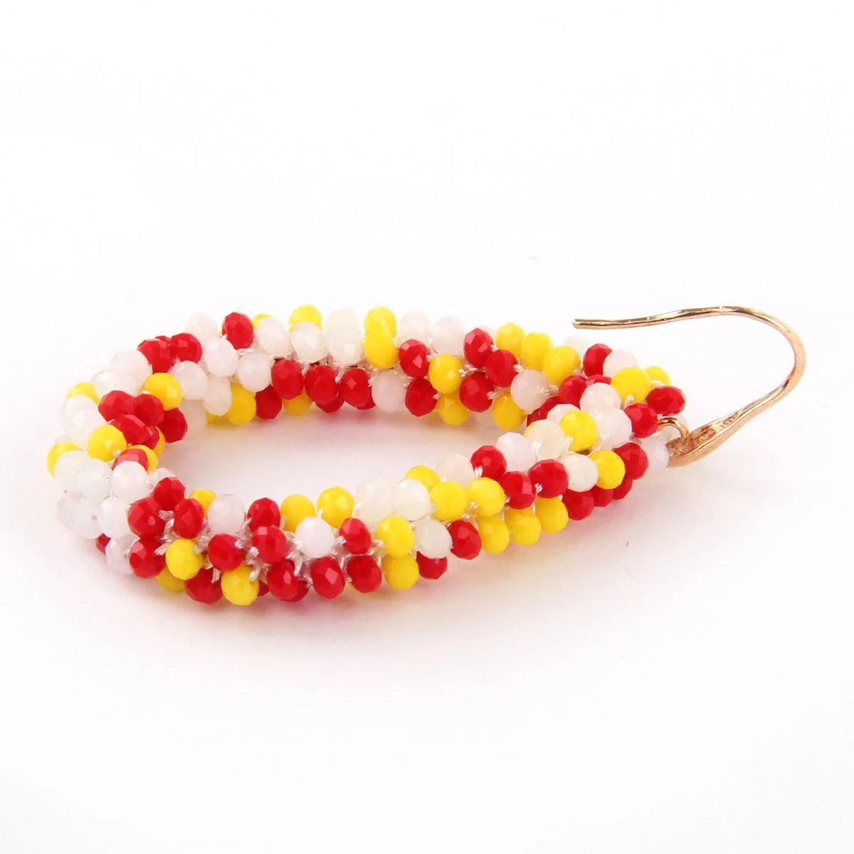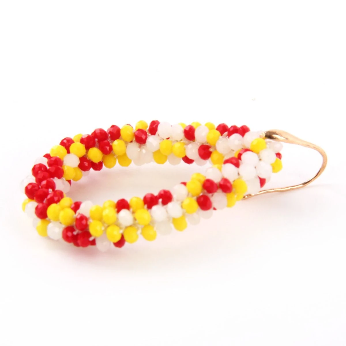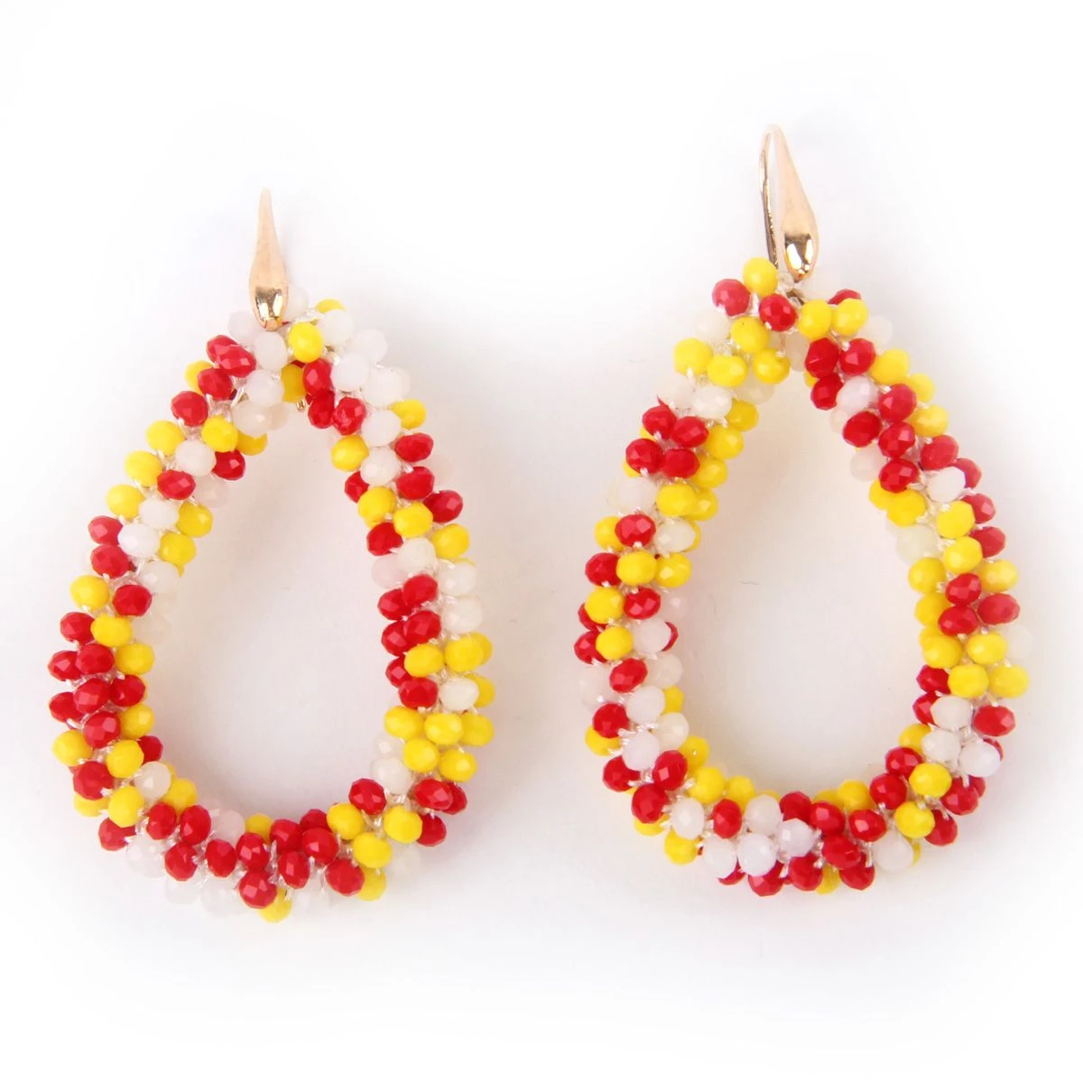Deze luxe oorbellen zijn echte eye-catchers. De oorbellen zijn verfijnd bezet met kleine rood-wit-gele kraaltjes voor een sprankelend effect. Deze oorbellen zijn de ‘finishing touch’ van je outfit.