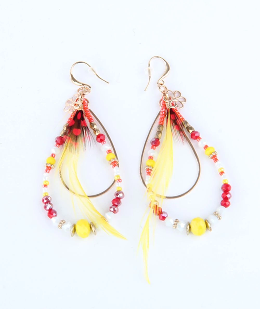 Luxe Oeteldonk oorbellen met kralen en veertjes