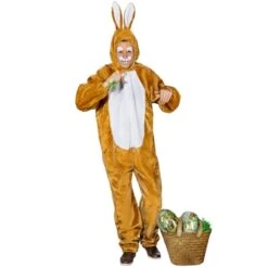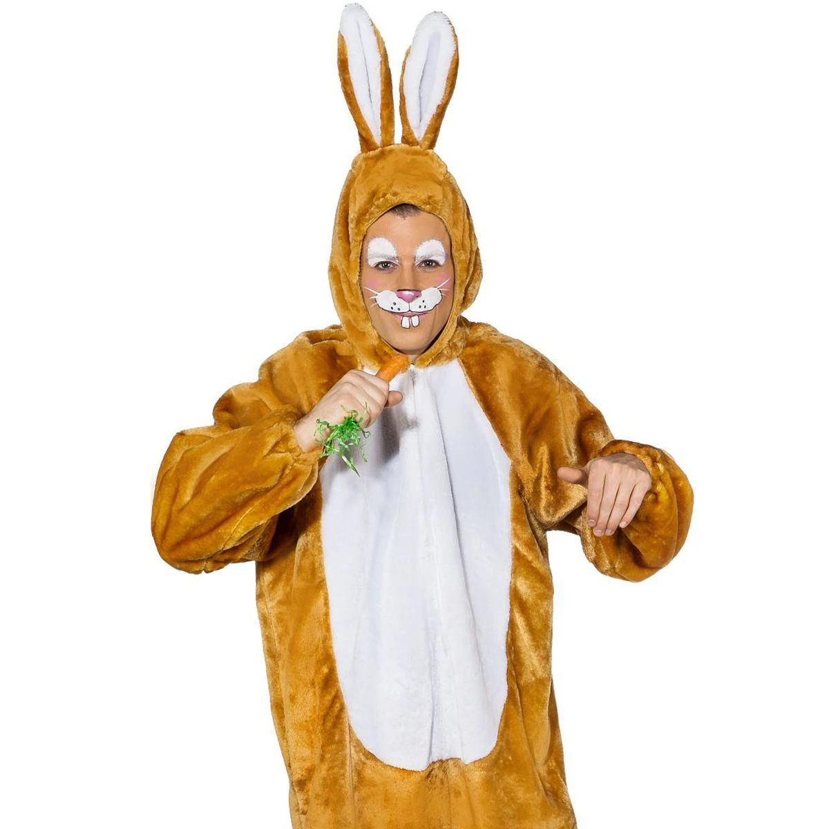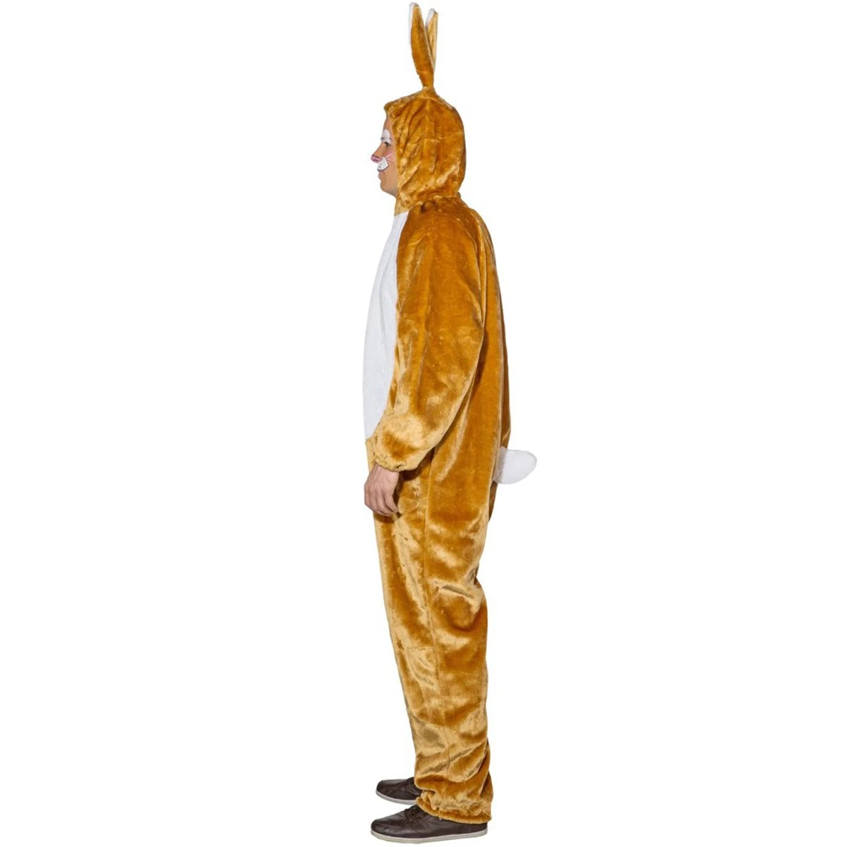 Met dit schitterende, superluxe paashaaspak verstop jij op de allerleukste manier de paaseieren met Pasen. Dit geweldige paashaas kostuum is gemaakt van een topkwaliteit, superzachte, dikke pluche en heeft een handige ritssluiting aan de voorzijde. Aan de capuchon van dit overall zitten grote hazenoren en aan de achterzijde een leuk staartje. Zet de capuchon op je hoofd en je bent een echte paashaas!Â