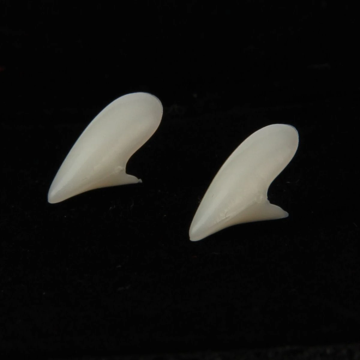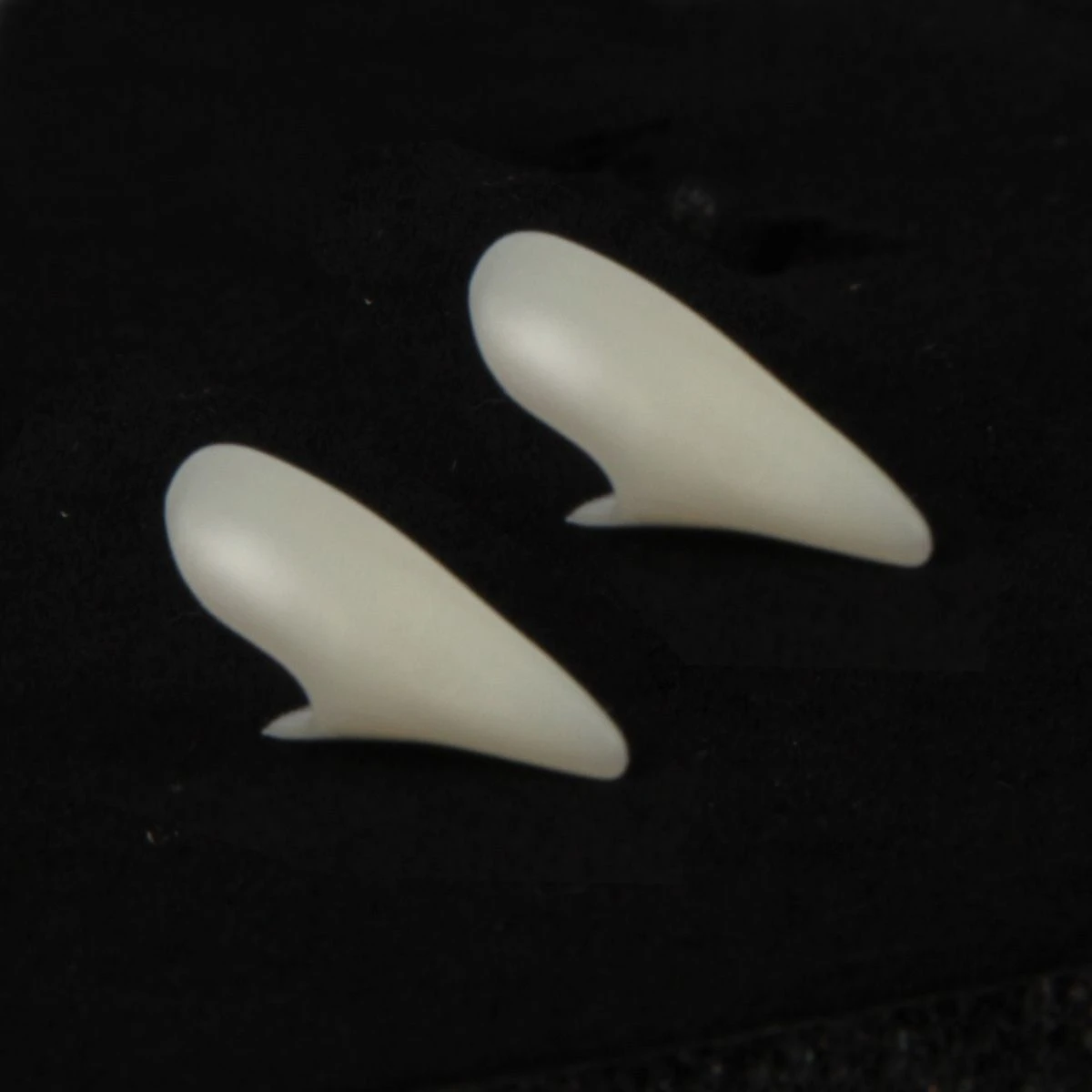 Set van 2 luxe vampier hoektanden, lengte 19 mm. De ivoorkleurige tanden hebben een zeer realistische look. Je bevestigt ze gemakkelijk op je eigen tanden met thermische tandenlijm, deze is verkrijgbaar in onze webshop. Verkrijgbaar in 2 lengtes, wij raden 17 mm aan voor voruwen en 19 mm voor mannen. De tanden worden geleverd in een luxe bewaardoosje.