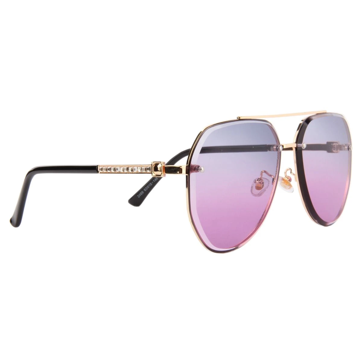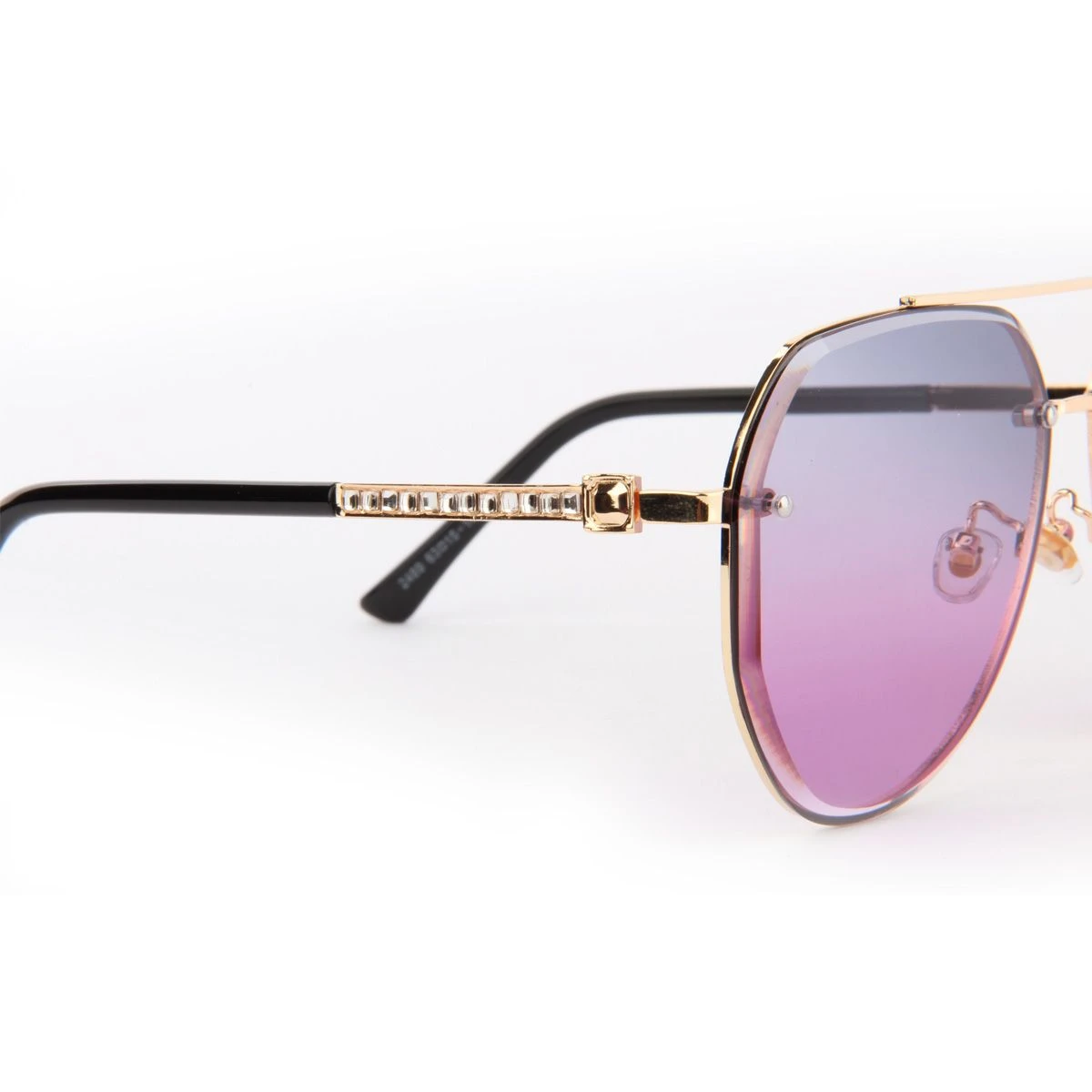 Luxe, stoer model, heren zonnebril met paarse glazen. De poten zijn afgewerkt met steentjes. Met deze bril maak je je outfit helemaal af.
