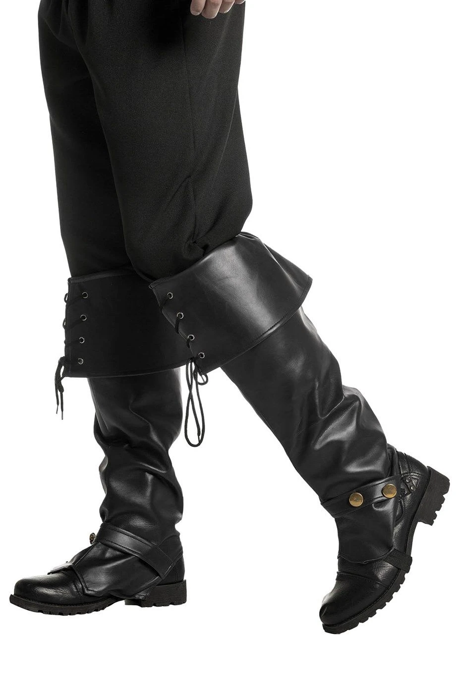 Zwarte Musketier beenkappen om je Musketier kostuum helemaal compleet te maken. Draag de beenkappen over je eigen laarzen of schoenen.