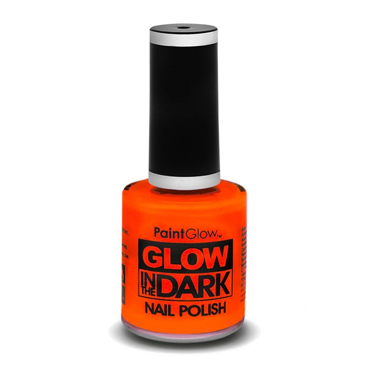 Glow in the dark nagellak in de kleur neon oranje. Inhoud 12 ml.