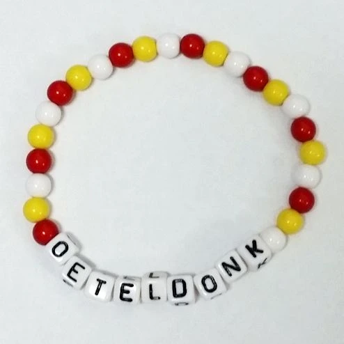 Leuk rood, wit, geel Oeteldonk kralenarmbandje met Oeteldonk letter kralen.