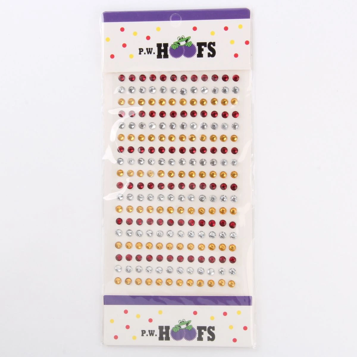 Versier je gezicht met deze rood-wit-gele strass steentjes. De steentjes zitten op een kaartje van 216 stuks en zijn gemakkelijk op je huid te plakken en te verwijderen.