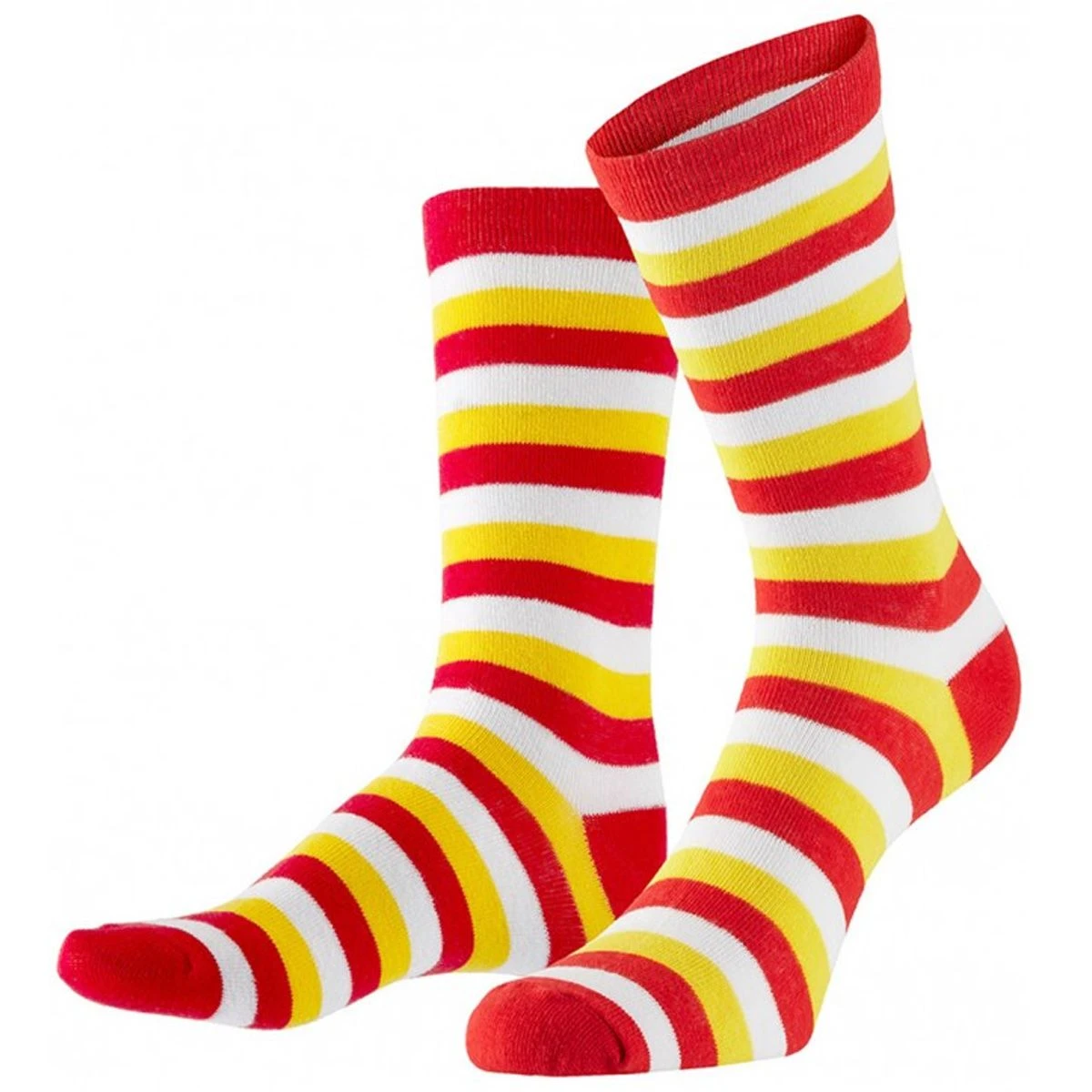 Super leuke rood-wit-gele sokken. Perfect als je van top tot teen in het rood wit geel carnaval wil vieren.