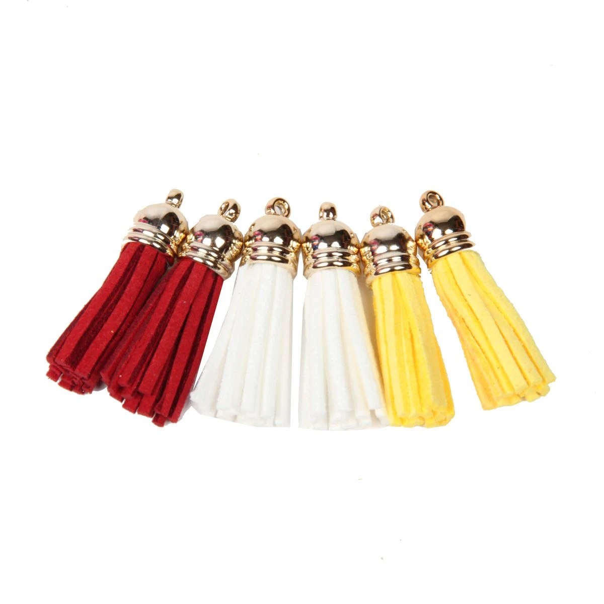 Mooie, luxe Oeteldonkse flosjes van suède (set van 6 stuks) voor op kleding of hoedje. Formaat: 4 cm.