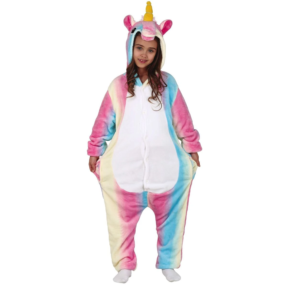 Heerlijk zachte unicorn onesie in regenboog kleuren met leuke unicorn muts.