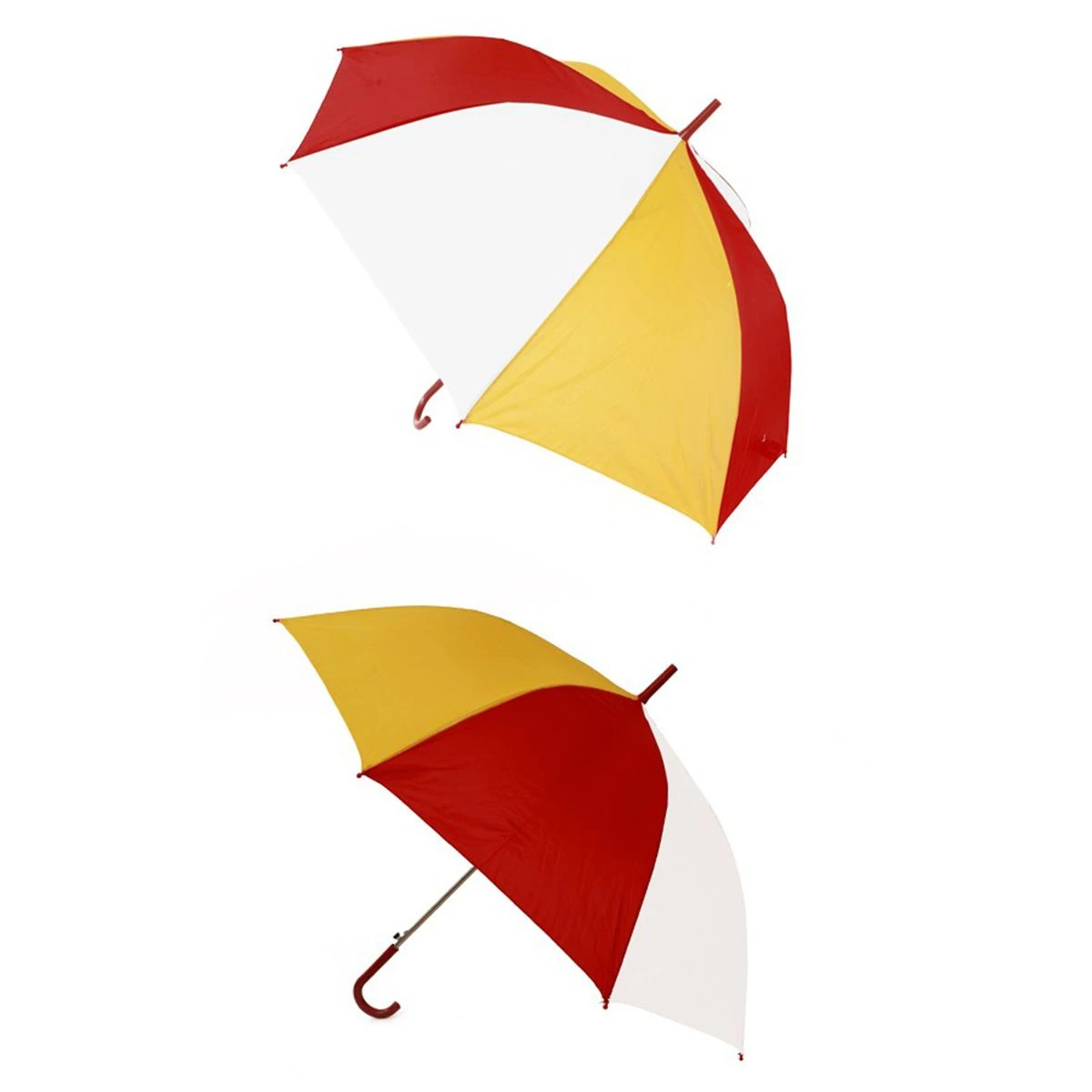 Leuke paraplu in Oeteldonkse kleuren, rood, wit en geel.