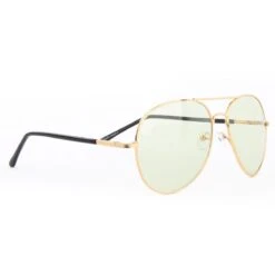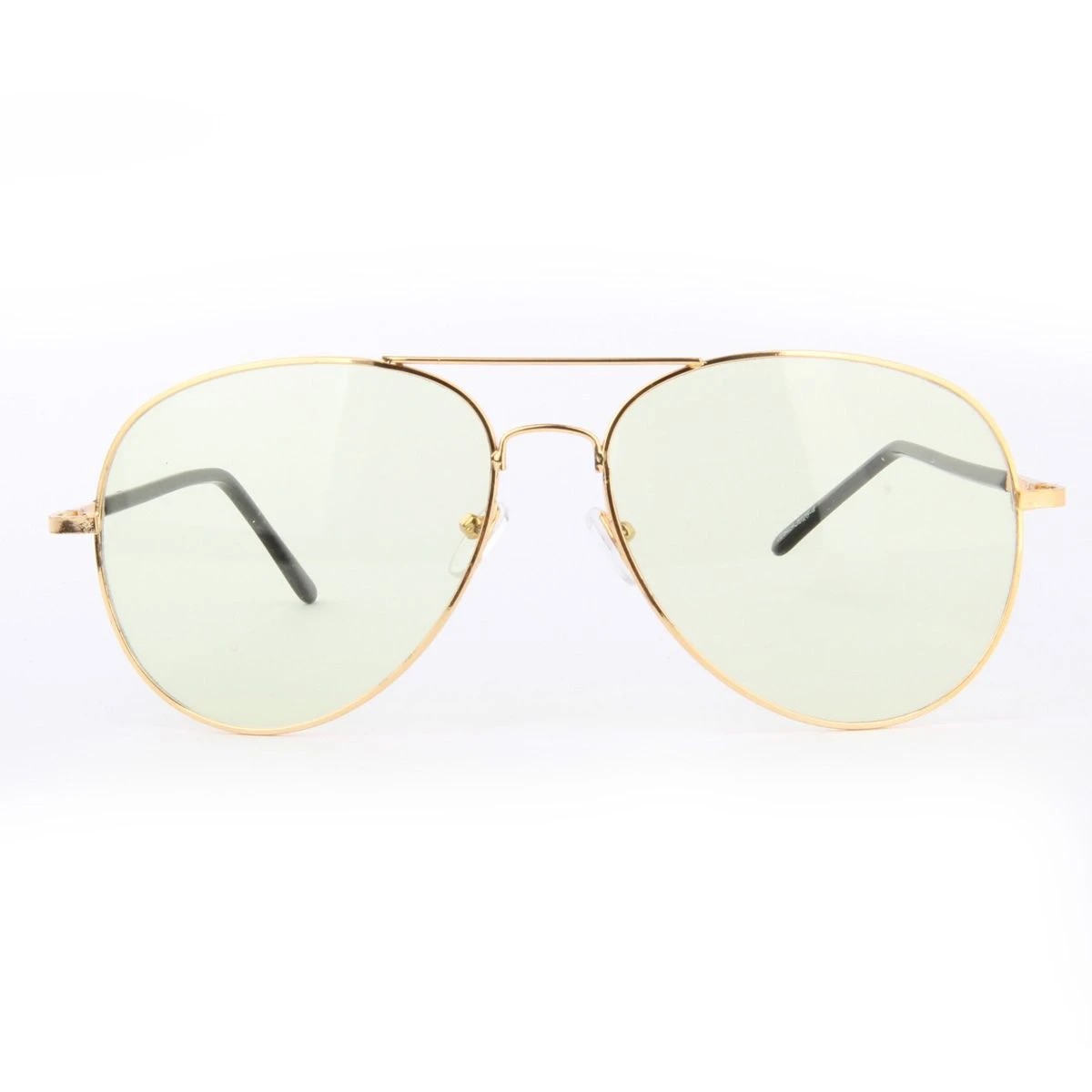 Pilotenbril met groene glazen. Het montuur is goudkleurig. Met deze bril maak je je outfit helemaal af.