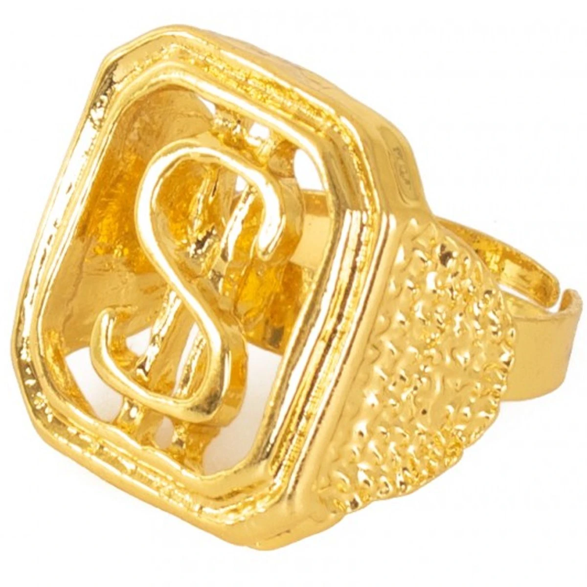 Gouden dollar ring. Leuk voor je gangster/maffia/fout party outfit. One-size past altijd.
