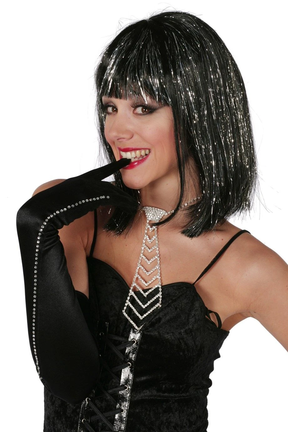 Glitter haar, vallend op schouderhoogte.