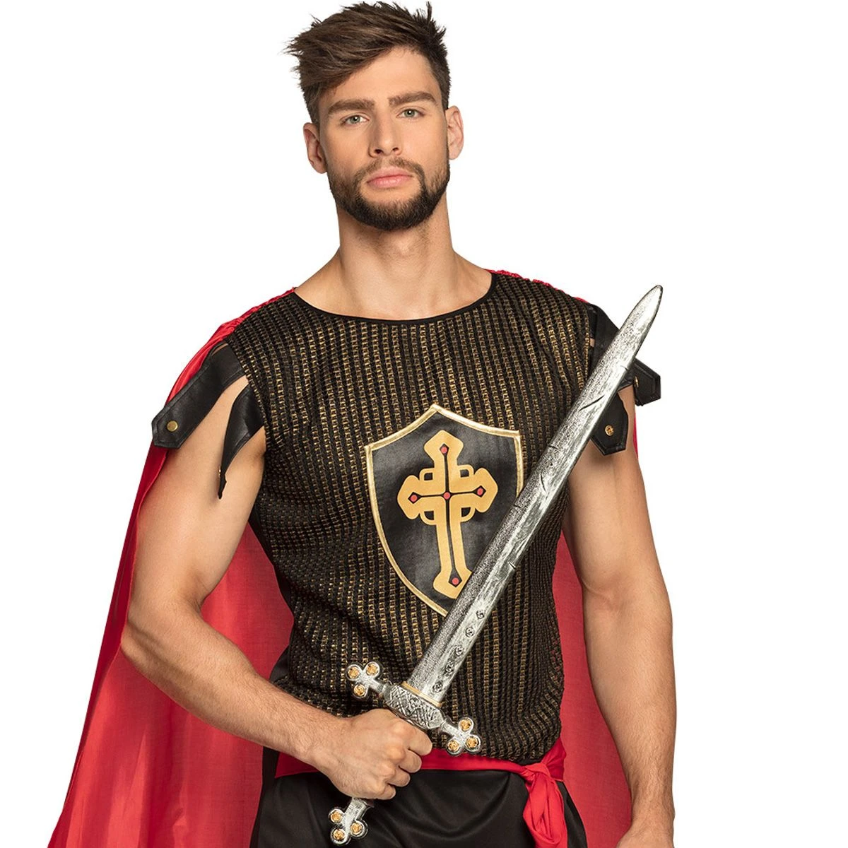 Ga ten strijde als een stoere ridder met dit mooie ridderzwaard. Het zwaard is 72 cm. De details op het handvat maken het zwaard het perfecte accessoire bij een ridder kostuum. Ideaal voor carnaval of een themafeest!