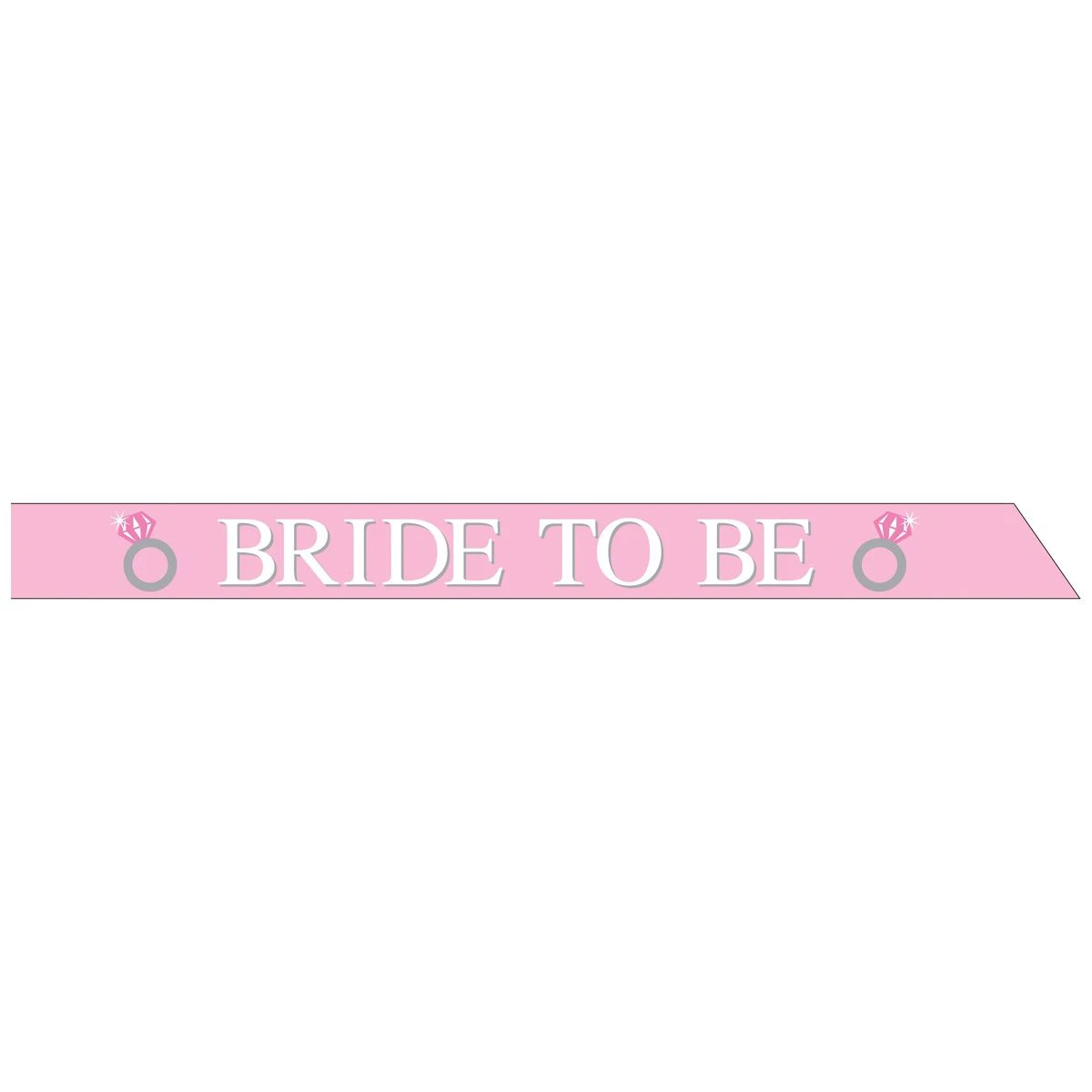 Roze sjerp met de tekst ‘Bride to be’ en opdruk van diamanten ring. De sjerp is van soepel vallende satijn, 168 x 10 cm. Laat het vrijgezellenfeest maar los barsten!
