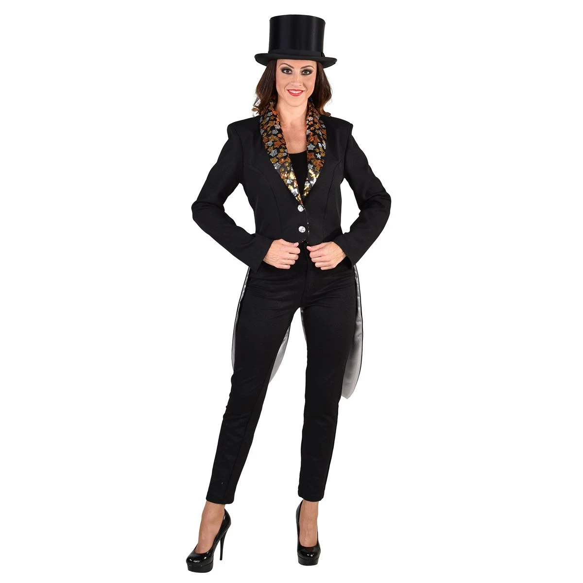 Zwarte slipjas voor dames voorzien van een pailletten kraag met sterren.