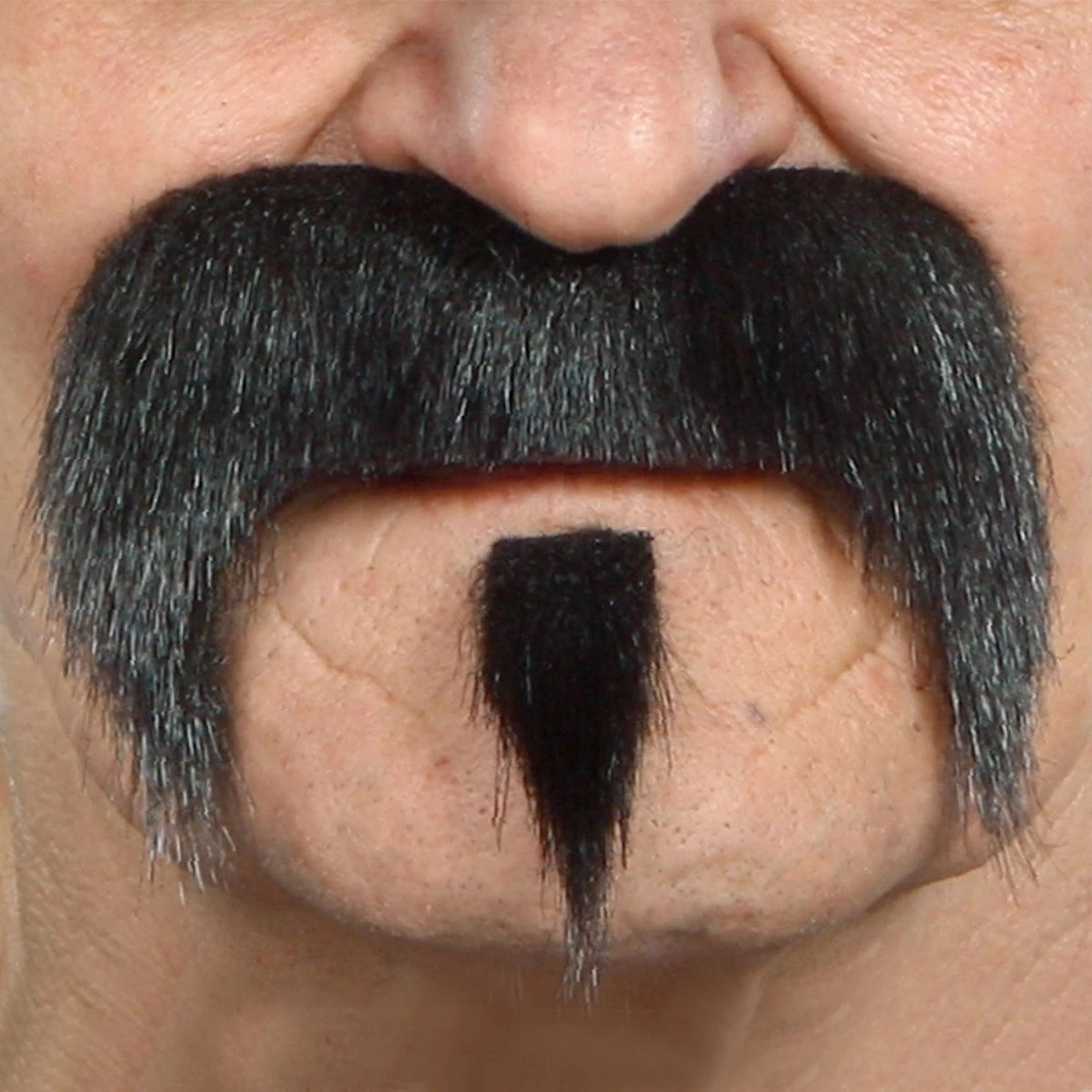 Een zelfklevende zwarte snor en een sik. Perfect om elke outfit compleet te maken.