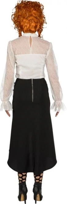 Deze zwarte Steampunk rok is een high/low rok die achter wat langer valt dan voor. De Steampunk rok heeft mooie nep leren details. Een erg mooie rok. Ook leuk om te dragen in combinatie met een corset en cowboy hoed naar de Toppers of met Halloween.