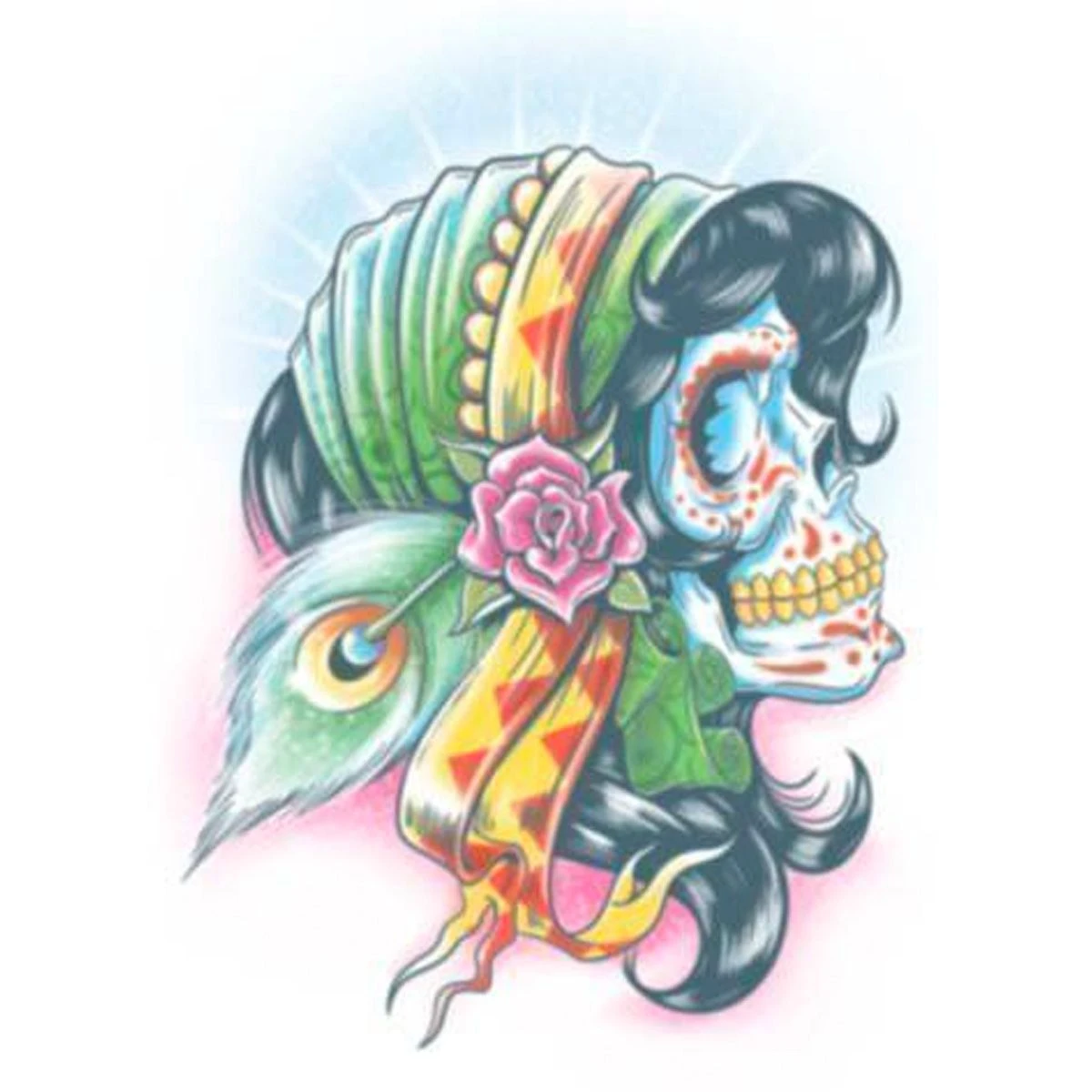 Neppe tattoo van Day of the Dead Lady Gitanos. Eenvoudig aan te brengen met water!