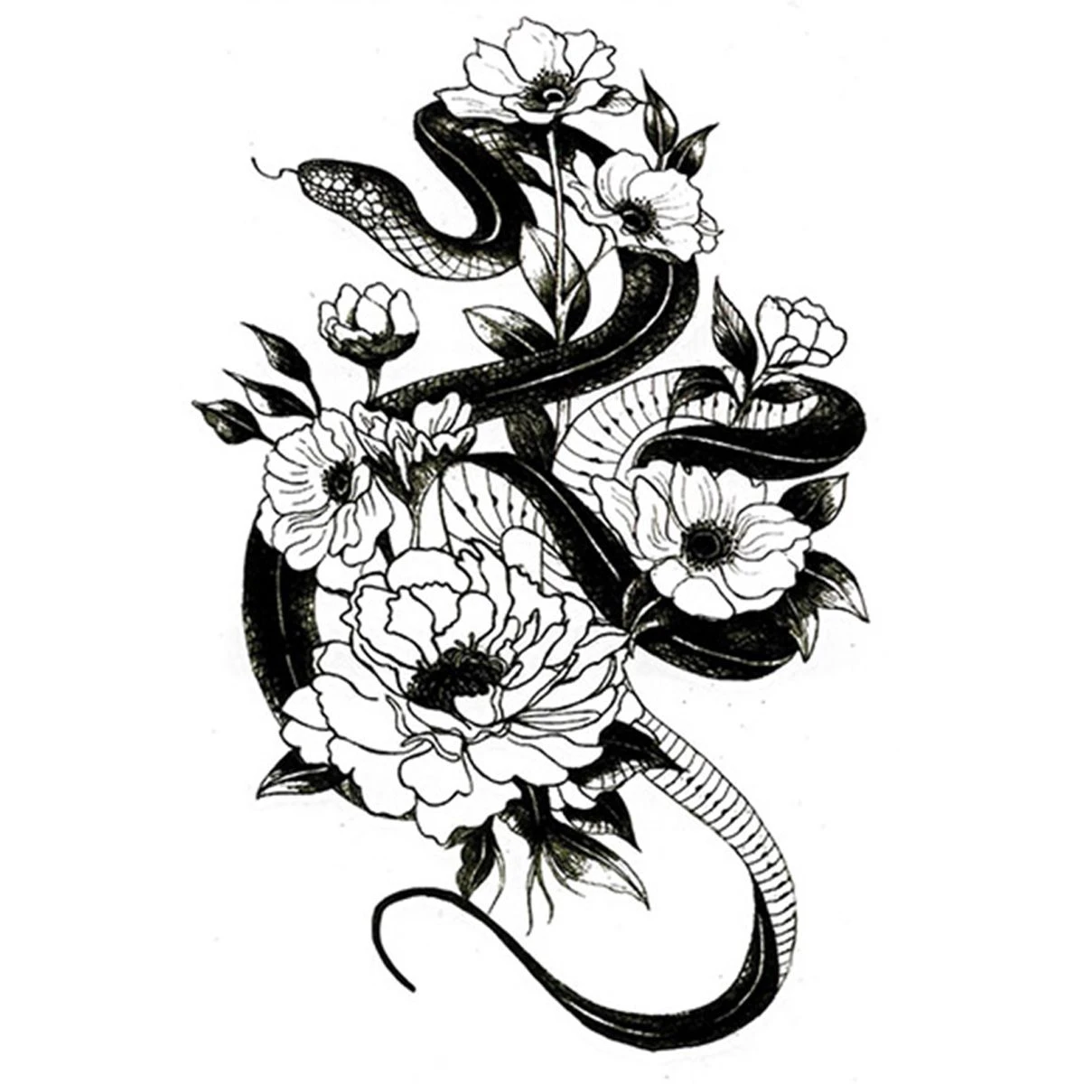 Neppe tattoo van een slang met bloemen. Eenvoudig aan te brengen!