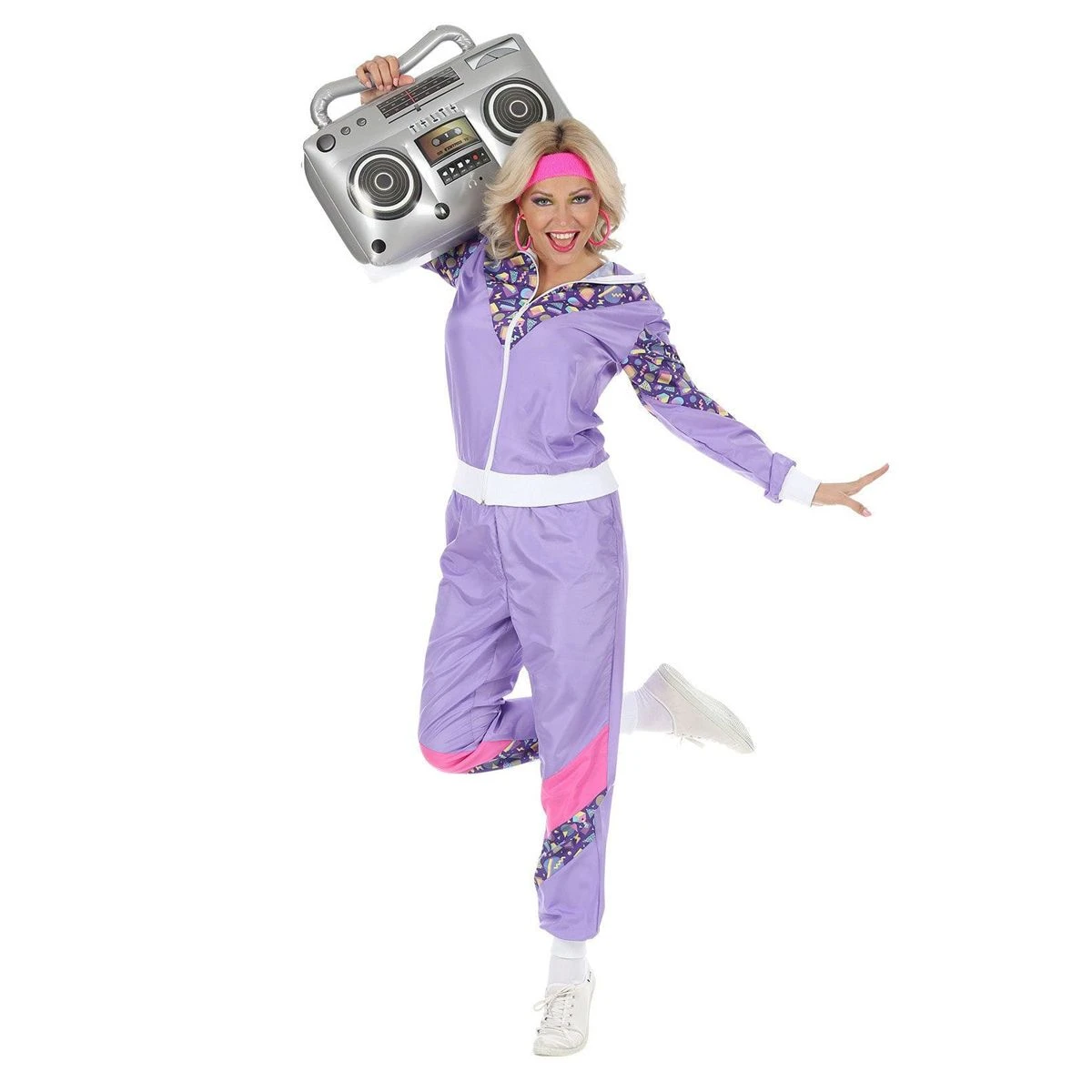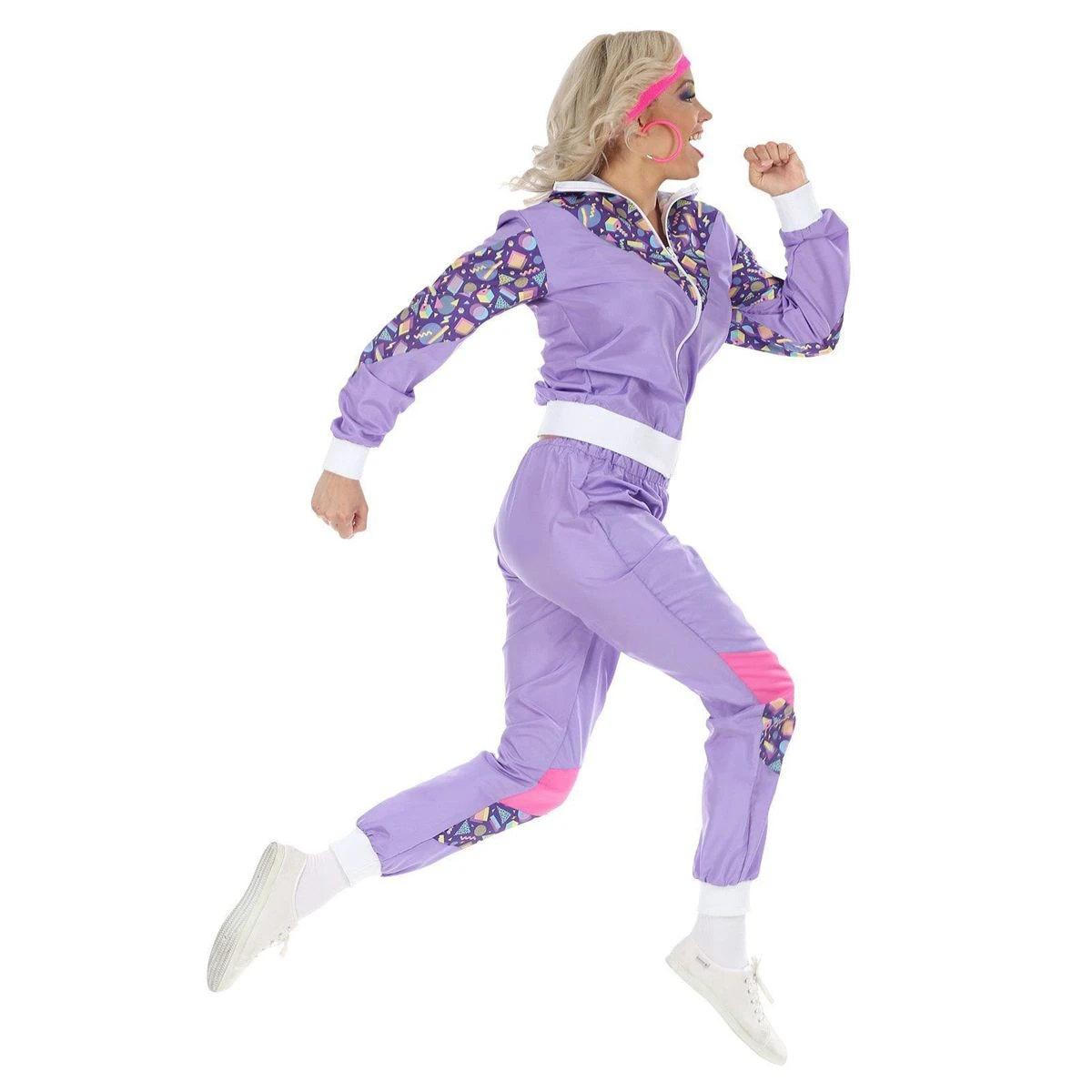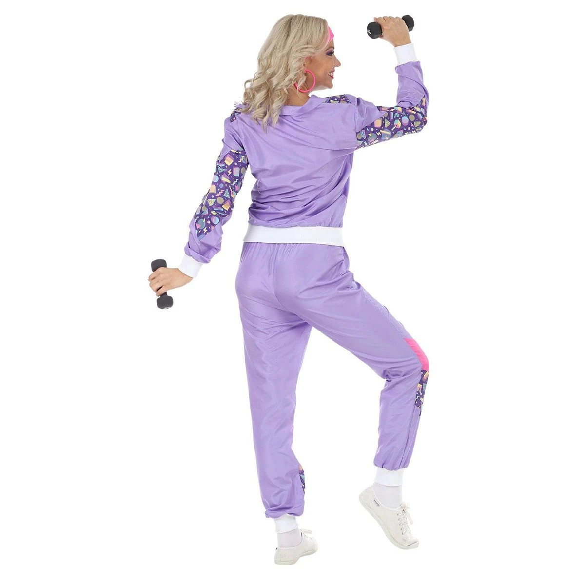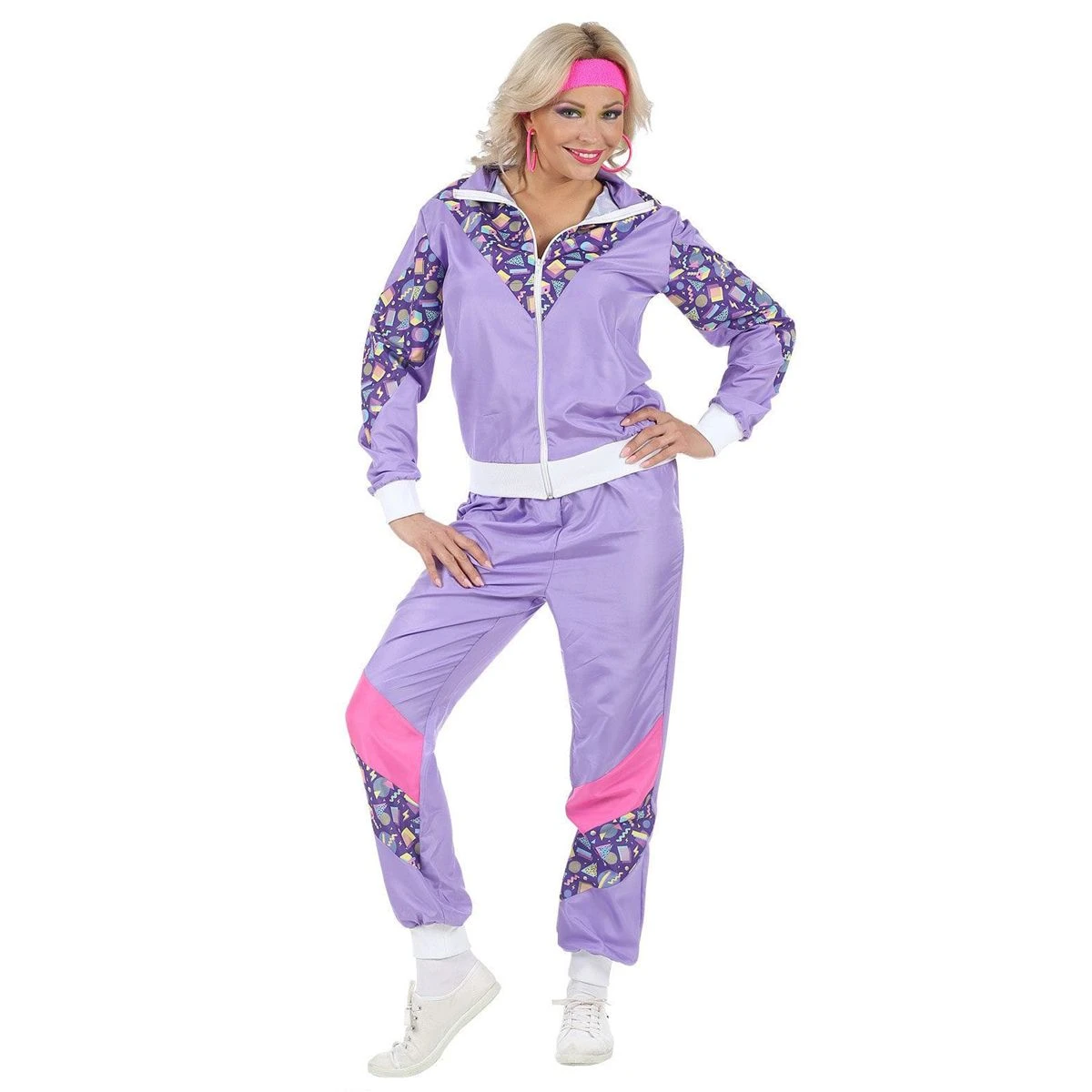 Dit foute trainingspak bestaat uit een paarse broek met jasje.