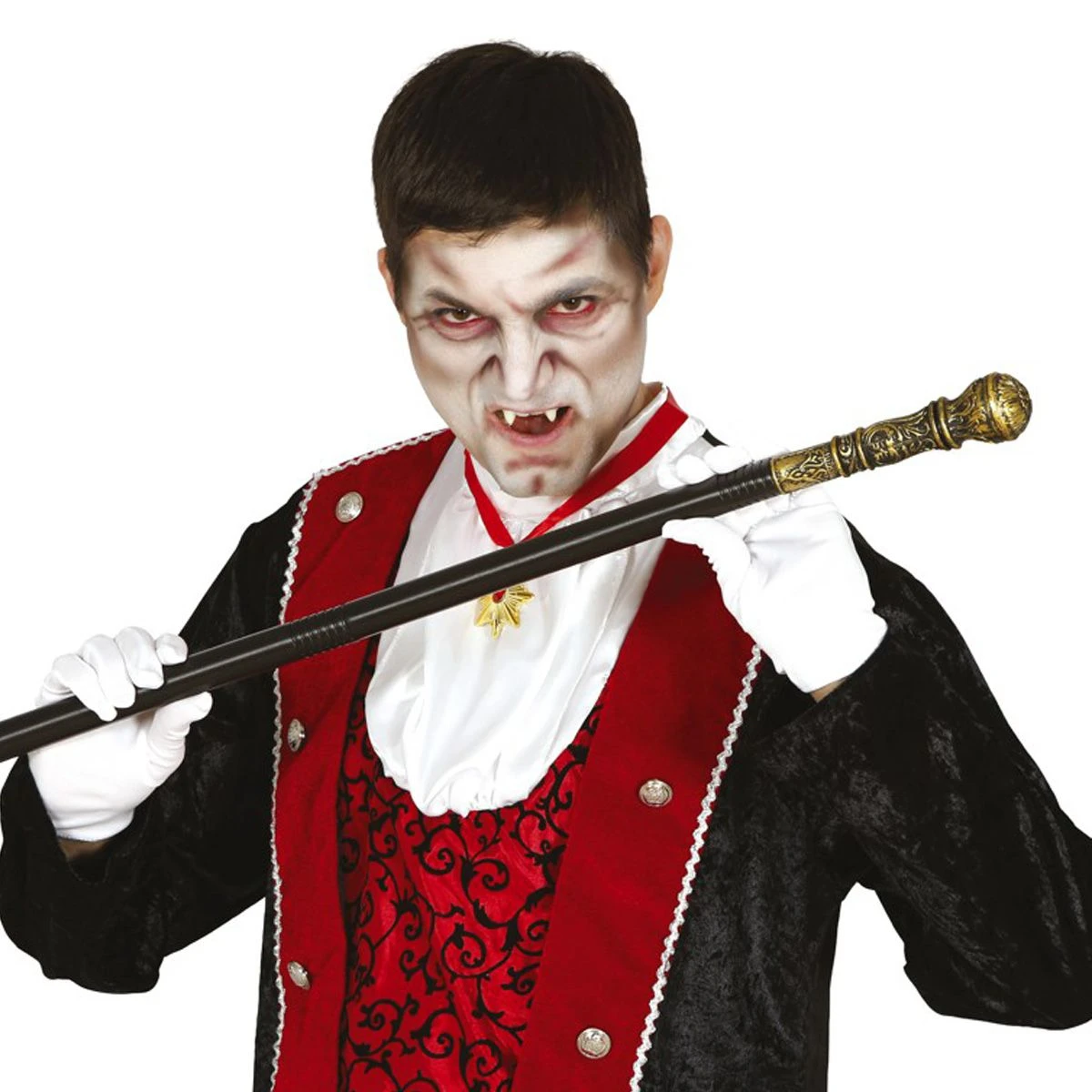 Wandelstok zwart met goud. Voor een Steampunk, Peaky Blinders, of Dracula outfit.